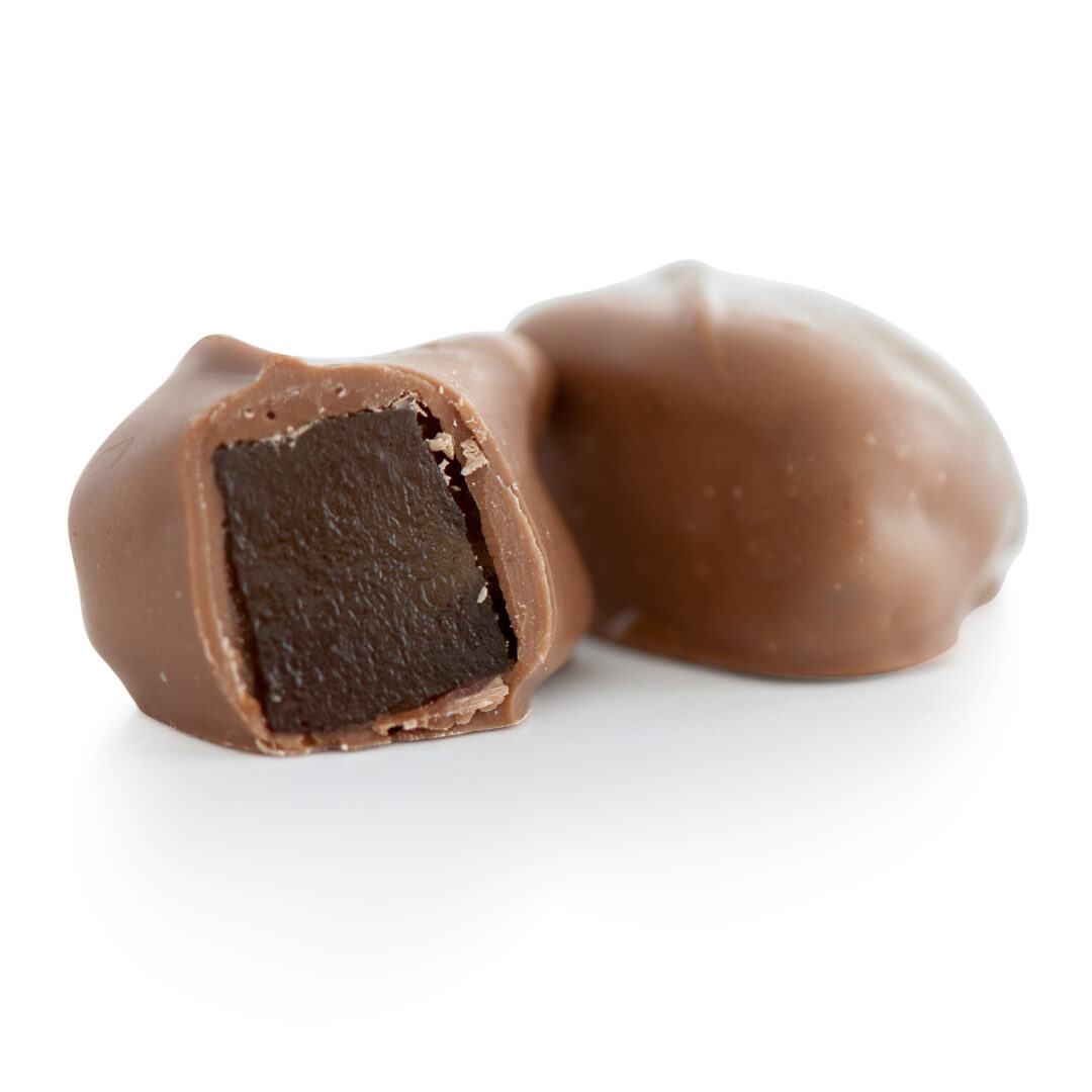 A delightful triangle of candied pineapple drenched in either rich dark chocolate or creamy milk chocolate.