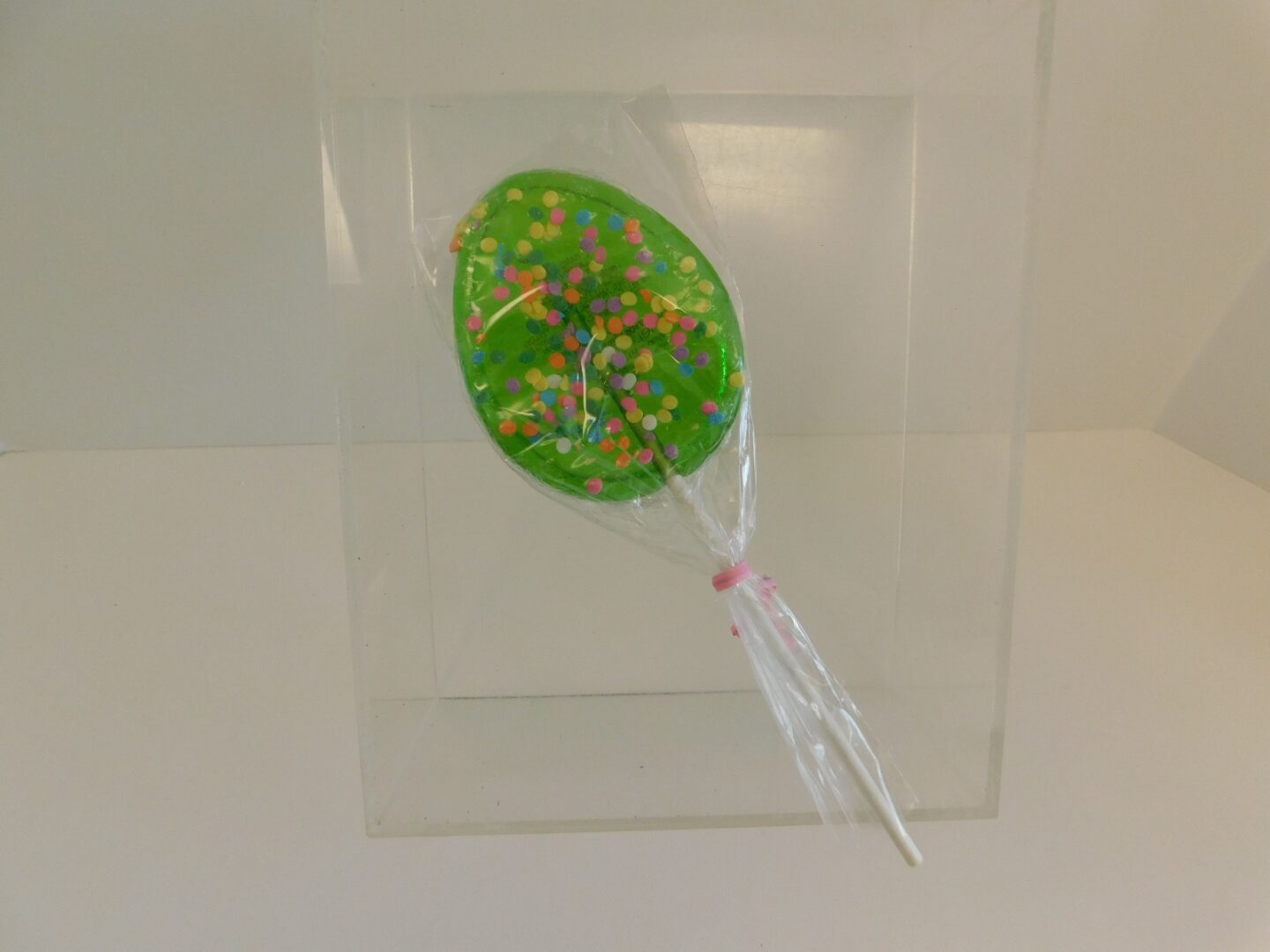 A delightful egg barley pop with sugar confetti decoration. (Color will vary.)