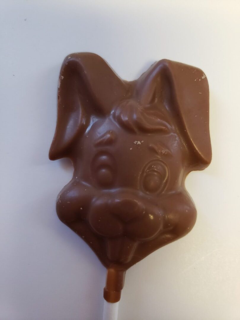 Creamy milk chocolate cute bunny pop with flop over ears. (May substitute with another pop of equal value.)