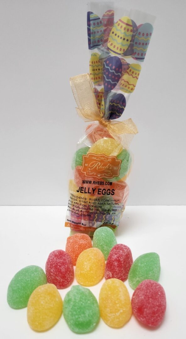 Jelly Eggs$3.65 Colorful egg jellies in a half pound bag. In stock Jelly Eggs quantity Add to cart SKU: EBJEL Categories: Bagged & Novelty, Easter items will be available to ship and pick up 3/11/26 or after Reviews (0) Reviews There are no reviews yet. Be the first to review “Jelly Eggs” Cancel replyYou must be logged in to post a review.